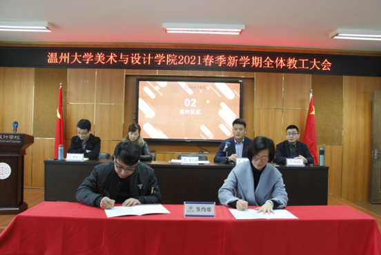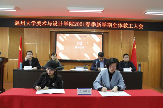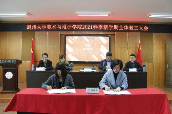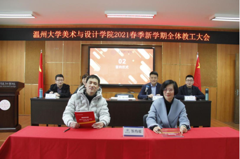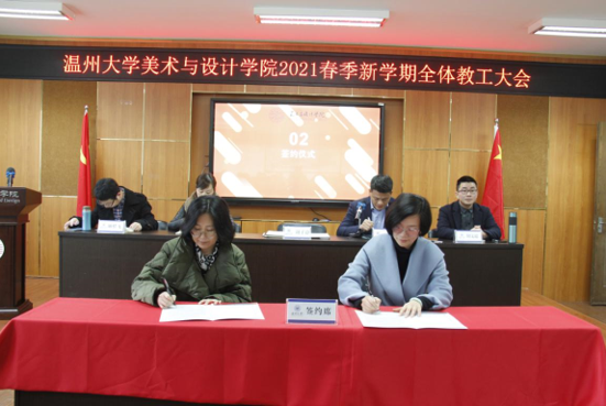 3月3日,色色小说 2021年春季新学期全体教工大会在2B4001顺利召开,学院领导班子、全体教职工参加会议。会议由叶正飞书记主持。 首先,大会对色色小说 2020年度获得校级先进个人陈旭海、张丽、朱江晖、黄高路、黄玫玮、黄呼尔励、黄良、杨永利等教师进行了表彰。 随后,为了落实学院“十四五”期间(2021-2025)的目标任务,层层压实责任,确保全面完成学院发展的各项目标任务,谢子静院长分别与美术系、视觉传达设计系、环境设计系、服装与服饰设计系、服装设计与工程系签订了《色色小说 2021-2025目标责任书》。各系主任分别就上学期工作作总结和本学期工作思路汇报。 紧接着,杨丽君副书记、胡文超副院长、顾任飞副院长分别围绕着学院学生工作、教学工作、科研及研究生教学等工作进行了具体部署。叶正飞书记就学院安全稳定、意识形态以及师德师风建设提出要求,并为下一步学党史主题教育作动员。 最后,谢子静院长作工作部署总结讲话。首先,她对上学期及寒假期间的工作进行了回顾,充分肯定了学院各项工作扎实推进的同时,在专业建设、人才培养、人才引进、服务地方等方面均取得了突破性成就。随后,谢院长提出全力推进服工和美术专业认证工作、尽力组织新增专业申报工作、奋力推动人才培养质量提升、全力打造人才培养质量展示金名片、奋力推动教师教科研水平提高、全力推进引才引智工作、全力承办“瓯越杯”工业设计大赛、举力举办建党100周年系列活动、积极参与色色小说 美术馆建设系列工作、接轨学校“侨为特色”目标开新局等十大重点项目,并要求全体教工要以党建思想为引领,“强执行、抓落实、见成效”。她提出“目标引领抓落实”“齐心协力抓落实”“只争朝夕抓落实”等三大具体抓落实的方法,要求全体教工紧随学校跨越式发展的脚步,以担当作为的责任感、不进则退的危机感、时不我待的紧迫感、院荣我荣的荣誉感,充分发挥色色小说 特色,奋力谱写学院发展的新篇章!
