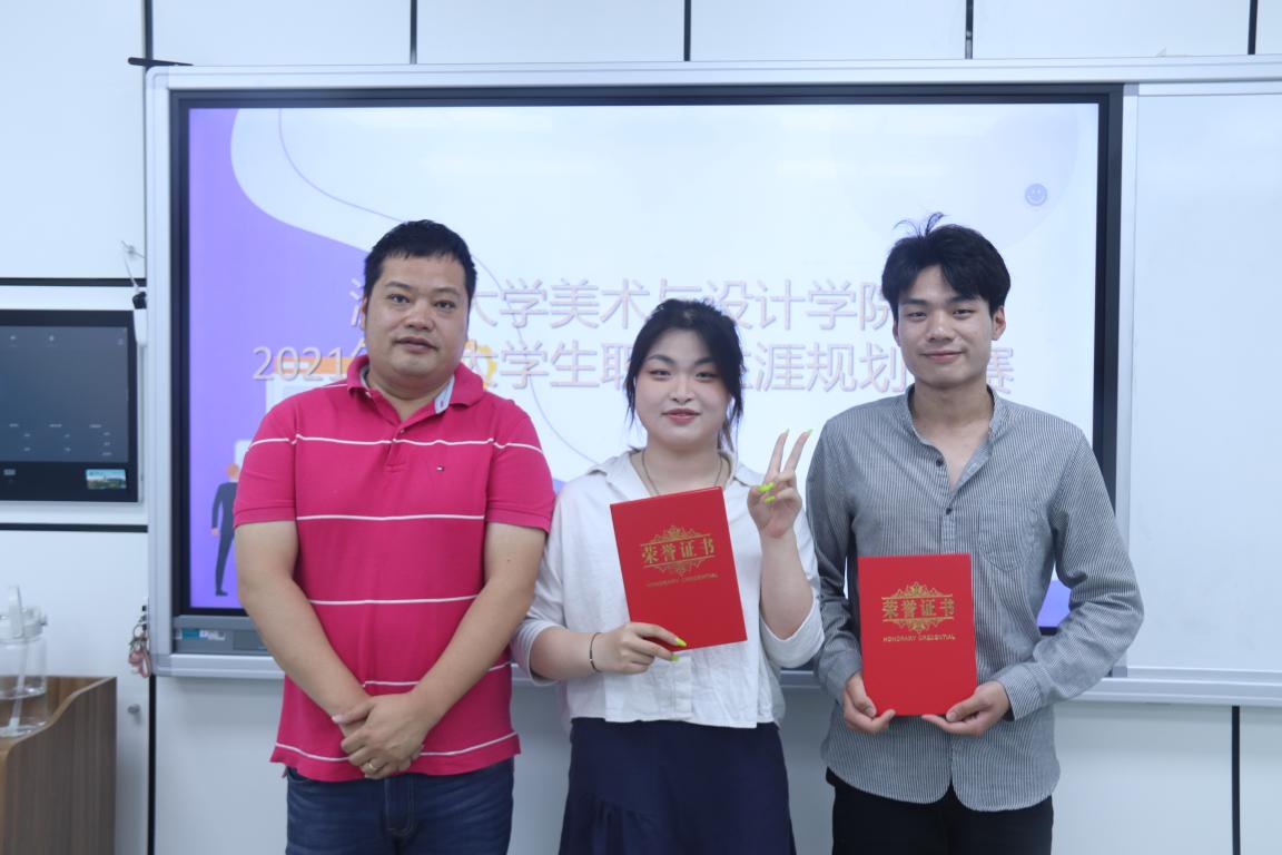 最后,经过评委的严格打分,公布获奖名单,并在现场进行了颁奖。获得一等奖的是王琦瑄的《缬艺行》,获得二等奖的是崔俊松《婚纱摄影师》,金一言的《为人师表,为艺术战》;获得三等奖的是曾晨的《南艺》,李世豪的《画笔涂绘理想》,获得优秀奖的是方婧凯的《筑梦之路》、王琦瑄的《缬你同行》。希望这些同学在自己规划的职业道路上可以越走越好。