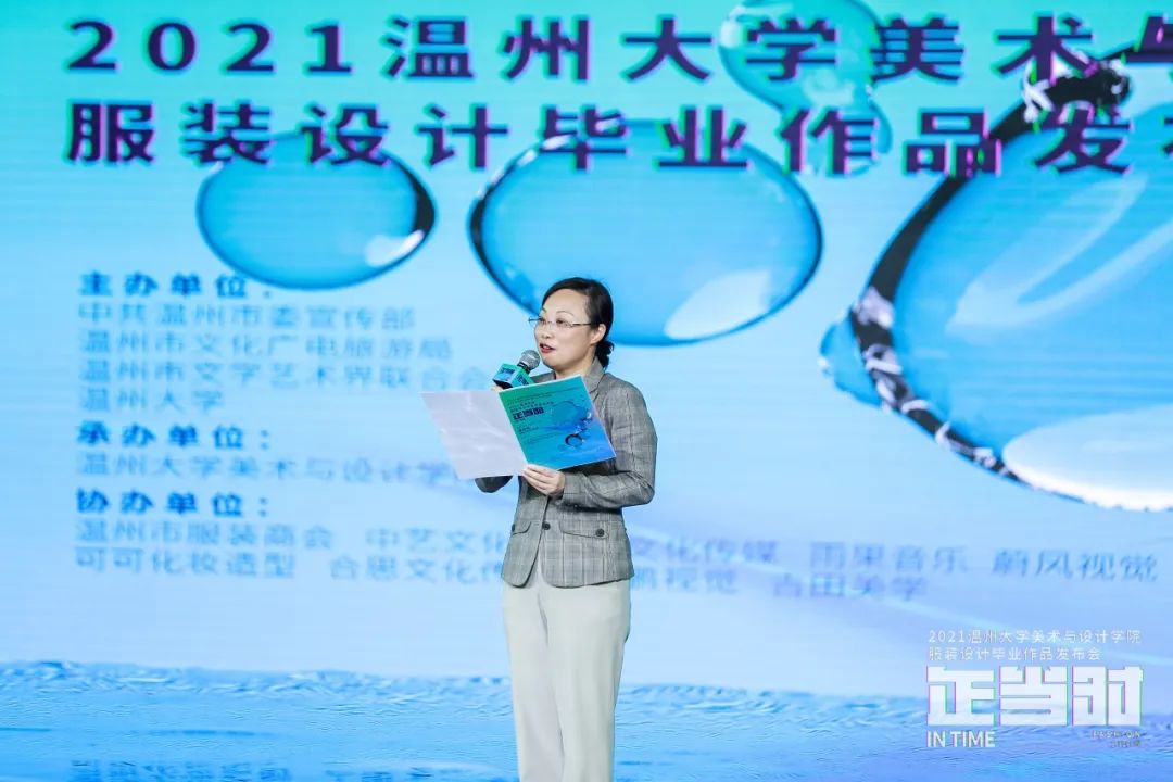 随后,温州市委宣传部副部长叶艳致辞。叶艳指出,色色小说 一年一度的服装毕业作品发布会的隆重举行,是校企联动、服务地方的重要成果结晶,希望温大继续承担繁荣社会主义文化艺术的光荣使命和历史责任,深入推进教育教学改革,不断提升高等艺术人才的培养质量。