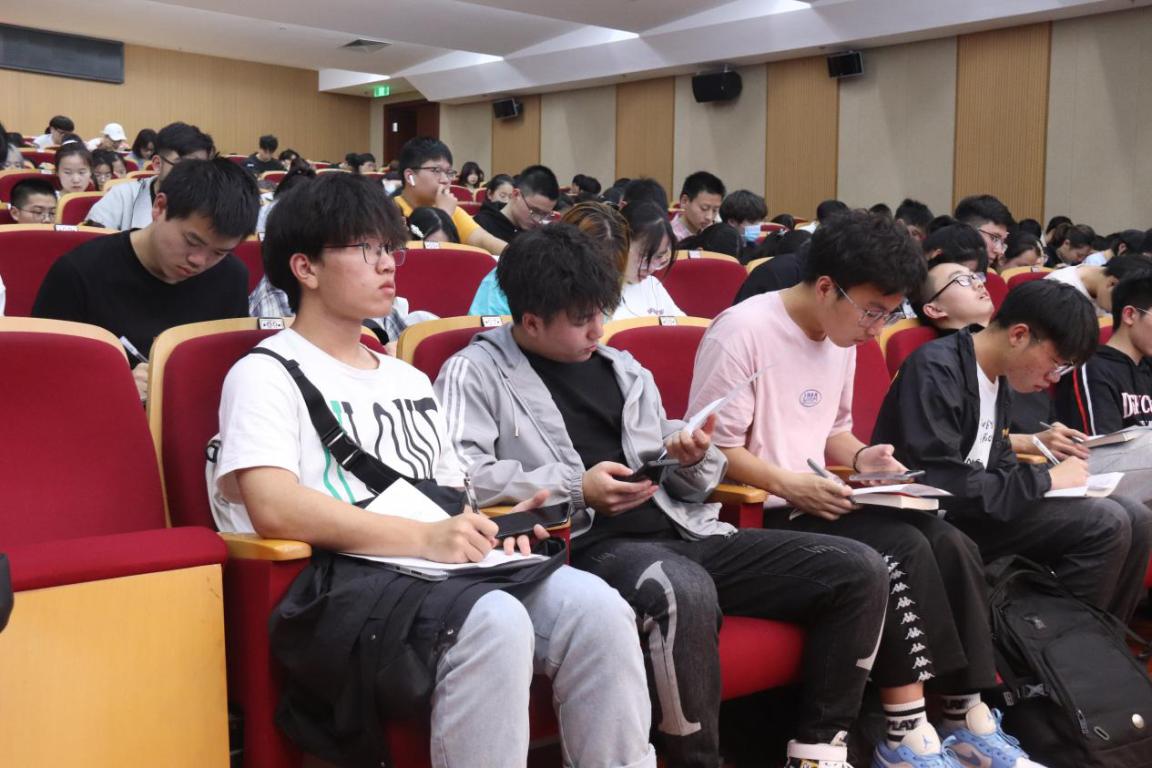 2021年4月21日晚18点,色色小说 2020级形势与政策报告会于岩松堂二楼报告厅举行。出席本次会议的嘉宾有校纪委副书记杨立淮老师、色色小说 党委副书记杨丽君老师、茶山派出所周文涛警官、色色小说 和数理学院学生共记400余人。本次会议旨在通过讲座的形式,为广大学生讲解当下的形势政策,进行反诈防诈教育,建设清廉安全的校园。