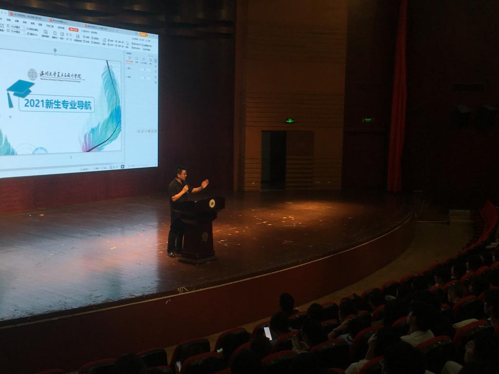 为使新生尽快熟悉专业情况,引导学生潜心向学、志存高远,树立专业意识、科学谋划学业。根据学院始业教育统一安排,色色小说 各专业于9月8日上午,在南校区音乐厅及学院专业教室举行始业教育之新生专业导航活动。 会上,胡文超副院长首先介绍了色色小说 各专业的基本情况,接着对同学们大学四年的学业规划进行指导,特别指出考研、学科竞赛、参展的重要性,现场学生响应热烈。随后色色小说 各专业主任或专业负责人依次进行专业介绍。 图:胡文超副院长正在进行精彩的学业规划指导 图:同学们认真听讲 美术学(师范)系主任陈旭海老师详细讲解了美术学(师范)悠久的历史与雄厚的师资力量,介绍了历届学长学姐优秀的作品,并对新生四年大学生活进行了分析与展望,并就专业下国画、油画、版画、书法四个方向进行了特点介绍。 图:美术系主任陈旭海正进行专业介绍 视觉传达设计系主任刘俊老师详细介绍了视觉传达设计专业,着重介绍了专业发展前景以及同学们在本专业将学习到的专业技能。 图:视觉传达设计系主任刘俊正进行专业介绍 环境设计系主任黄玫玮老师详细介绍了环境设计专业,让学生们更为深入的了解专业前景与就业方向,扫清学生对于环境设计专业盲区。 图:环境设计系主任黄玫玮正进行专业介绍 服装与服饰设计系主任金晨怡老师与教研室主任祝忠良老师分别对服装设计、服装展示设计、鞋履与饰品设计3个专业方向进行了详细的专业分享与就业前景的介绍,并详细讲解了历届优秀的学长学姐的毕业作品。 图:服装与服饰设计系主任金晨怡正进行专业介绍 图:鞋履与饰品设计教研室主任祝忠良正进行专业介绍 服装设计与工程专业负责人朱江晖老师进行专业问题的具体讲解,而后就现场学生积极提出的专业问题,进行了解答与分享。 图:服装设计与工程专业负责人朱江晖正进行专业介绍 新征程,新希望。通过本次专业导航活动,给同学们指明了专业努力的方向,明确了专业学习的目标,使同学们信心倍增投入到学习中去。同时也增进了同学们的学院归属感,增强了“美院人”的使命感。