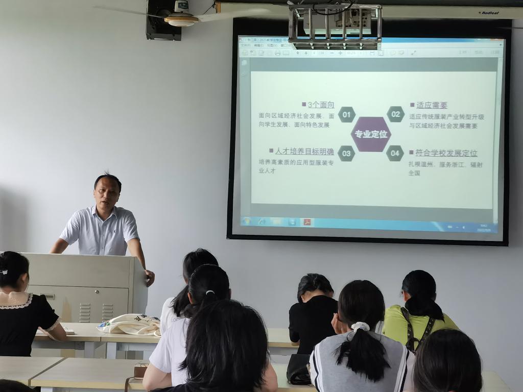 服装设计与工程专业负责人朱江晖老师进行专业问题的具体讲解,而后就现场学生积极提出的专业问题,进行了解答与分享。