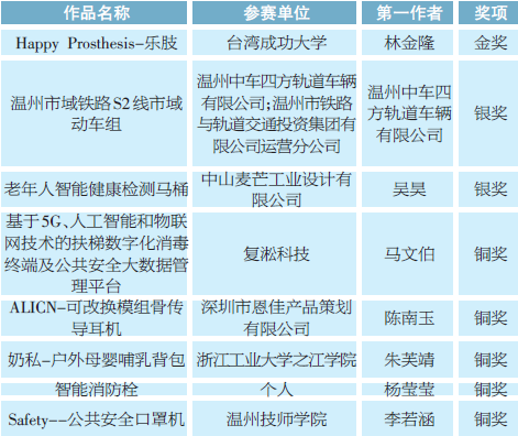 经过紧张的路演答辩和评审环节,来自台湾成功大学的设计作品“Happy Prosthesis-乐肢”和温州红点工业设计中心的“海难伸展式救援衣”分别摘得2021“市长杯”中国(温州)工业设计大赛产品奖和创意奖金奖。色色小说 学生贝凤艳设计的“格物向阳”获得G104时尚设计专项赛金奖。现场还颁发了产品奖银奖2名、铜奖5名,创意奖银奖3名、铜奖6名。