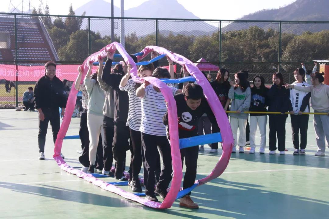 一个人可以走很快一群人可以走很远年轻、热血、伙伴、团队步履不停,不负好时光 11月10日下午,美院2021-2022学年秋季趣味运动会在南校篮球场举行,由各班组成的26支队伍及2支教师职工队伍参加了比赛。 在活动开始前,团学指导老师石建林老师为大家致了简短的开幕词,让同学们了解比赛规则并且明白举办此次活动的目的与意义。随后比赛正式开始。此次趣味运动会的比赛项目有“毛毛虫竞速”、“旋风跑”、“全场往返运球投篮”等六个项目。 01 毛毛虫竞赛:由于道具较重又比较胖限制了比赛队员的行进速度和动作,比赛是看起来像一只只胖胖的毛毛虫在摆动,很是可爱。 02 两人三足:培养了同学之间的合作意识,加强了合作默契。 03 车轮滚滚:同学们和老师配合的相当默契,最终顺利抵达终点。 04 旋风跑:同学们拿着长杆绕着柱子跑,惊险刺激的绕柱赛跑很有乐趣。 05 全场往返运球投篮:每个同学都很卖力,奋力的将手中的篮球命中篮筐。 比赛成绩 01 毛毛虫 第一名 教工二组 第二名 教工一组 第三名 20服设2班 02 两人三足 第一名 20服工 第二名 21设计7 第三名 20环艺2 03 车轮滚滚 第一名 21服工 第二名 教工组 第三名 20环艺2、20服设1、20美师2 04 篮球接力 第一名 20环艺2、20服设1、20美师1、20美师3 第二名 教工组 第三名 20美师2、20美师3、20服设2 05 集体跳绳 第一名 21服工 第二名 21设计1 第三名 20视传 06 旋风跑 第一名 21服工 第二名 20环艺2 趣味运动会欢乐的游戏使得大家乐在其中,丰富了同学们的课余生活,缓解了学习的压力,培养了同学之间的团结配合能力,增进了彼此之间的友谊,充分展示了大学生的良好精神面貌和体育风采培养了团结奋斗的团队精神展示了健康向上的青年形象。 相关链接://mp.weixin.qq.com/s/xBjUNDJ5KqUNpTqgbWembw