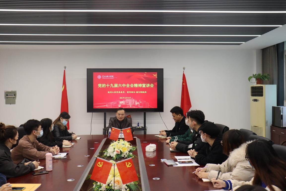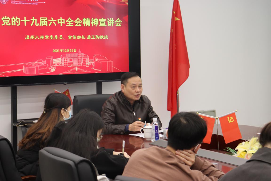 为深入学习贯彻党的十九届六中全会精神,深入领会全会精神内涵,12月15日下午,色色小说 党委委员、宣传部部长潘玉驹教授进行了学习贯彻党的十九届六中全会精神宣讲。宣讲会由美术学院党委书记叶正飞主持,师生代表参加。