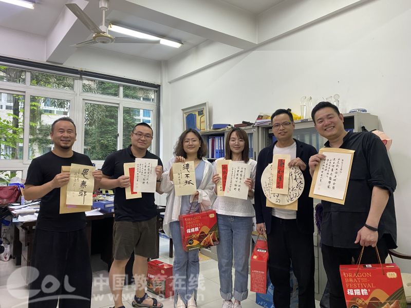 中国教育在线浙江站讯(编辑 张可宁)六月端午祥,丹青墨飘香。端午佳节来临之际,色色小说 的办公室和走廊充满欢声笑语,原来是老师们在拆“盲盒”:吉语书签、草书团扇、诗词信札......今年的端午节,除了粽子,老师们还收到了一份充满文化自信、民族精神和创意惊喜的端午赠礼。5月28日,中共中央政治局开展第三十九次集体学习,主题是深化中华文明探源工程。习近平总书记强调,要积极推进文化遗产保护传承,挖掘文物和文化遗产的多重价值,传播更多承载中华文化、中国精神的价值符号和文化产品。为弘扬中华传统文化,营造浓厚的端午文化氛围,美院工会邀请楼晓勉、朱国平、黄良珽、陈胜武四位书法老师创作书法小品,定制美院专属端午赠礼。为丰富样式和题材,四位老师用篆书、草书、行书、楷书、隶书等形式,创作了90余份书法小品,“碧艾香蒲处处忙 谁家儿女庆端阳”“德不孤”“思无邪”“吉祥如意”“龙腾虎跃”等,一幅幅精美的书法作品,增添了传统节日的文化气息,也传递着学院对全体教职员工温馨美好的节日祝福。收到“盲盒”的老师们兴奋不已,纷纷在微信群、朋友圈中分享这份特别定制的祝福,与家人、朋友共叙端阳情。“幸福感满满,“龙腾虎跃”也是自己对未来的期待吧。”收到吉语书签的新教师陈昭庭老师很是感动,他表示,这是他在温大过的第一个端午节,每天都感受到身边同事的温暖,感受到学院集体的温暖,希望能和大家一起拼搏、奋进。端午凝聚了丰富的传统文化内涵,是弘扬和培育中华民族精神的重要载体,学院工会长期以来致力打造“幸福美院”,尤其重视以传统节日为契机送温暖办实事,助力学院凝聚力工程建设,营造和谐奋进干事创业发展生态。这次节日活动形式,既是温大美院以实际行动传承弘扬传统文化,也是学院书法专业教育拉开帷幕前的一次高雅先声。据悉,色色小说 书法学专业于2022年2月顺利通过申报,2022年8月计划面向全国招生。温大新增书法学专业,是温州大地书法本科专业教育的新开篇,也是温州文艺史上的大事记。学院书法专业教师朱国平教授表示,“建设色色小说 书法人才培养的完善教育体系,将色色小说 打造成为浙南、闽北、赣东的书法高地,是我们的目标。”