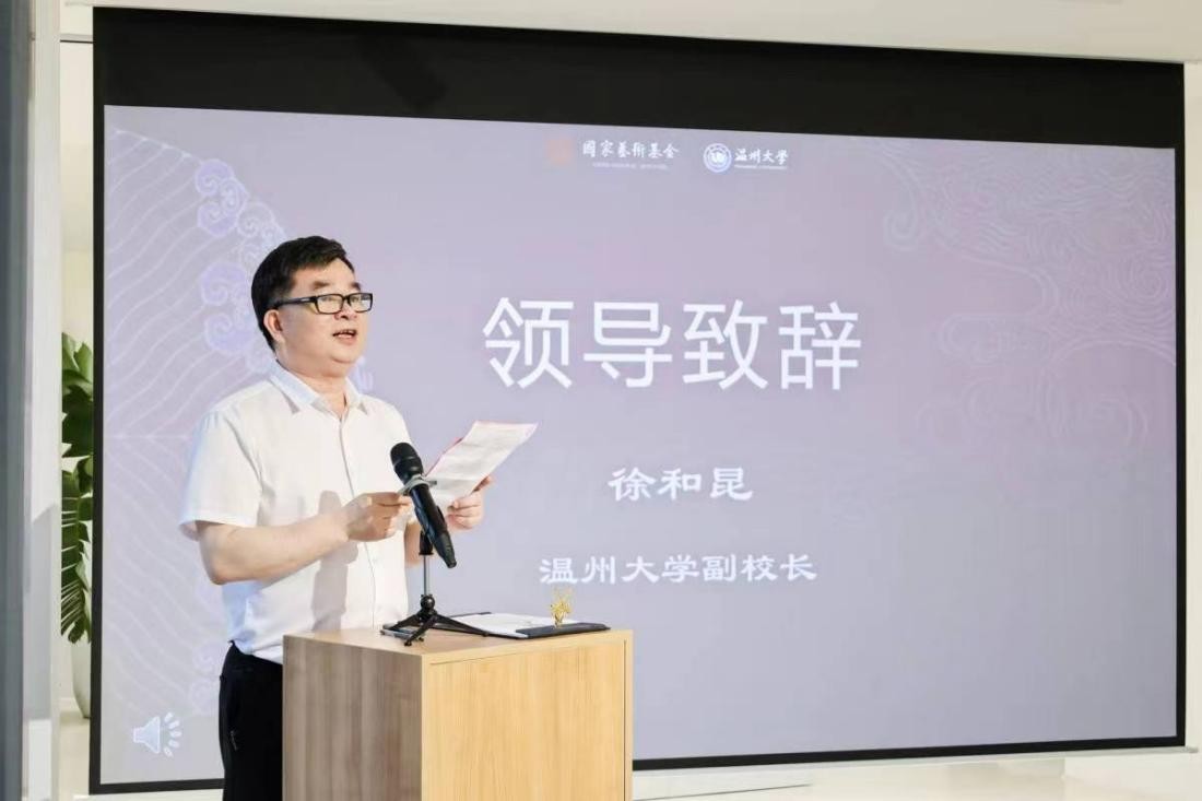 徐和昆副校长致辞。色色小说 是浙南闽北赣东区域唯一的综合性教学研究型大学,艺术教育底蕴深厚,实力突出,本次展览在国家艺术基金项目的大力资助下,必将进一步推进温州非遗人才培养,促进浙江工艺美术薪火相传,为中国刺绣艺术事业发展作出更大的贡献。