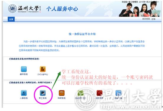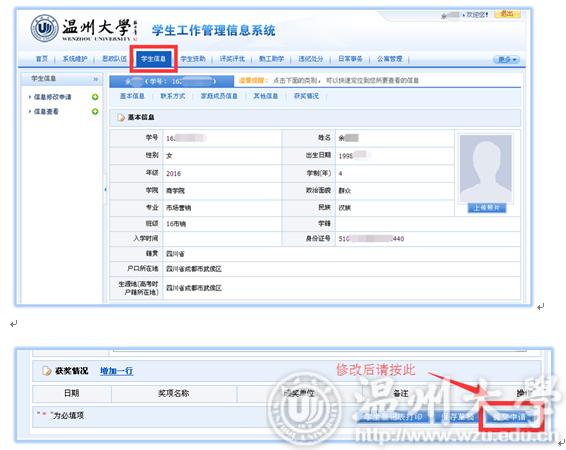 同学们好: 学工系统是贯穿大学生活的一个很重要的信息媒介。可在系统中的下载专区下载学校相关的各类文件,可在系统中办理个人信息维护、学生干部职务申请、评奖评优申请、各类资助申请、勤工助学岗位申请、勤工助学工资发放、日常事务(假期管理、假期留校申请、场地申请)等。请新生同学们尽快将学工系统中的个人信息进行维护,并在以后的大学生活中将信息不断更新,以便不影响在校期间接受各类紧急信息及各项事务办理。个人信息维护示意图如下: 一、登陆 打开//rz.seqxs.com,登录统一身份认证系统。 二、选择你要登陆的系统 三、新生个人信息维护(重要) 1、点击[学生信息],可以查看自己的个人信息。 2、个人信息从迎新系统中新生个人信息同步,如有发生变化的内容(如个人联系方式、工行卡号),请务必更新。 3、其他(电话号码、获奖情况、工行卡号动态填写)