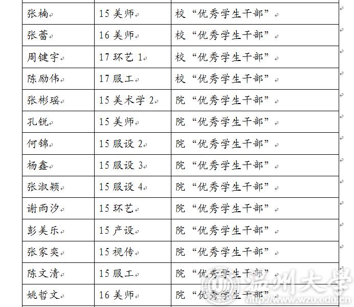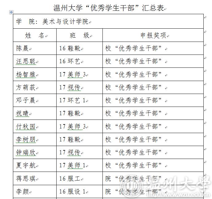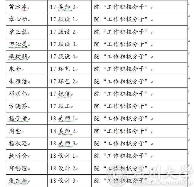 现将2018-2019学年第一学期色色小说 “优秀学生干部”“工作积极分子”名单公示如下,如对评选结果有异议,请于3月5日17:00前及时联系美术学院学生科。
