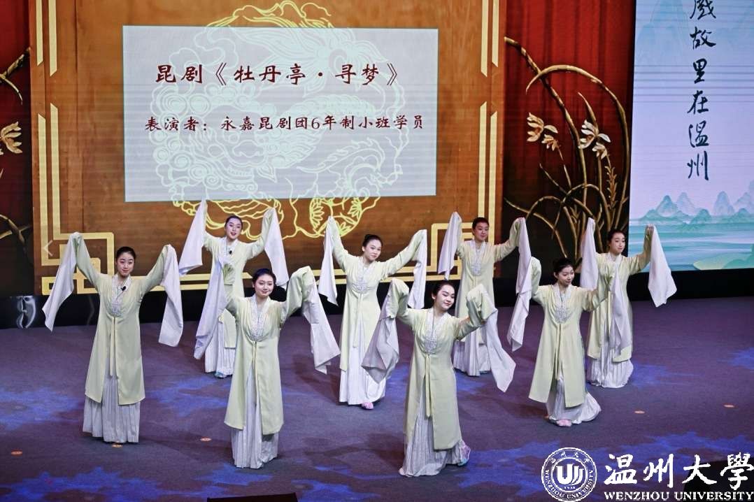 5月9日,“戏从温州来”2025南戏经典文化周分享会在浙江大学举行。分享会现场公布了温州新杂剧《问南戏》、跨界融合剧《寻音·南戏》、纪录片《戏从温州来》、专著《琵琶记-南戏文献全编》以及美术展《宋韵南戏-中国画创作研究展》等五个标志性项目。 分享会在歌曲表演《戏从温州来》中拉开帷幕,瓯剧、越剧、永昆等非遗剧种演员以经典南戏人物造型亮相。平阳木偶剧团现场展示国家级非遗“平阳木偶戏”。机器人Nancy在台上随中国戏剧梅花奖得主、温州市戏剧家协会主席方汝将共唱南戏。浙江艺术职业学院戏曲学院永昆小子班学员演出《牡丹亭·寻梦》选段,展现跨越800年的永昆魅力。 “永昆从仅能在各地庙台流动排演,到现在拥有4000多平方米的现代化剧场,从几个人到几十人,还有一批新生代演员即将加入,‘戏从温州来’也让永昆走出温州,走向世界。作为老一辈永昆人,我激动又欣慰!”85岁的永昆艺术家林媚媚在现场激动地说。温州永昆是当代南戏研究的活化石,分享会现场回顾了永昆的保护和传承历程。 据了解,为推进永昆保护与传承,去年7月1日,温州市出台实施《温州市永嘉昆曲保护条例》。目前,温州市正推进《温州大典》编纂工程。活动现场,浙江大学图书馆向《温州大典》编纂委员会提供了多种古籍底本,并颁发收藏证书。温州市向浙江大学捐赠《永嘉丛书》《敬乡楼丛书》《墨香簃丛编 惜砚楼丛刊》《琵琶记》《神器谱》等文献。 据悉,2023年,总台2023年春节戏曲晚会在温州九山书会录制。为了发挥戏曲春晚溢出效应,2023年8月温州推出“戏从温州来”南戏经典文化周品牌活动,走进长三角、京津冀、粤港澳、川渝等城市群。本次系列活动由浙江省文化广电和旅游厅、浙江省文学艺术界联合会指导,中共温州市委宣传部、温州市文化广电旅游局、温州市文学艺术界联合会主办,将持续至5月14日。 相关链接://app.gmdaily.cn/as/opened/n/d7a05f1d810c44be8582678bbfef9b72