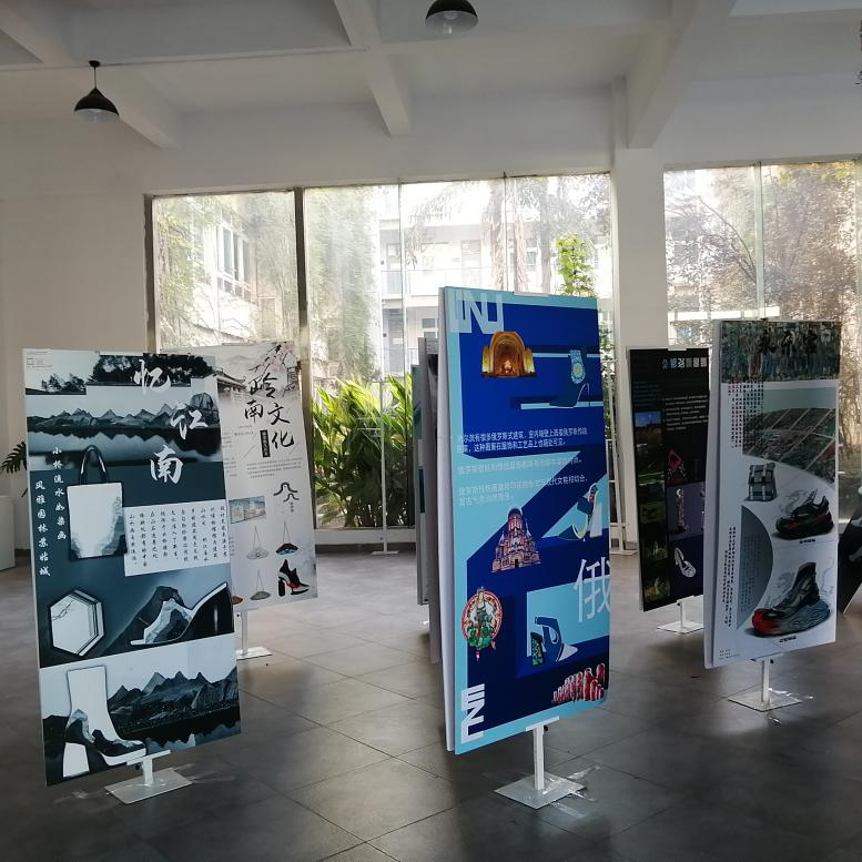 2020年11月9号早上8点20分,由祝忠良老师指导的17服设(鞋履与饰品设计)班《社会实践(艺术采风)》作品展览在色色小说 2B一楼展厅展出。展出时间为11月9日至17日。由于疫情影响,本次艺术采风经学校审批后,少部分同学由学院老师带队出行,大部分同学则采用自行就近选择考察地出行的方式同时开展。正因如此,本次采风考察显得格外有别于以往,考察地点有乌镇、西安、上海、四川等,学生们通过为期一周至三周的艺术考察感受到了当地的艺术气息、文化底蕴。本次展览以展板形式呈现,展示内容主要由同学们在艺术采风过程中收集的当地民胜古迹图片为主,结合当地艺术相关的传统纹样、色彩等民俗文化资料,以图文结合的形式制成。经教师指导,同学们在大量收集考察资料的基础上,进行提炼设计元素并做深入研究,运用于鞋款、包款饰品等设计。