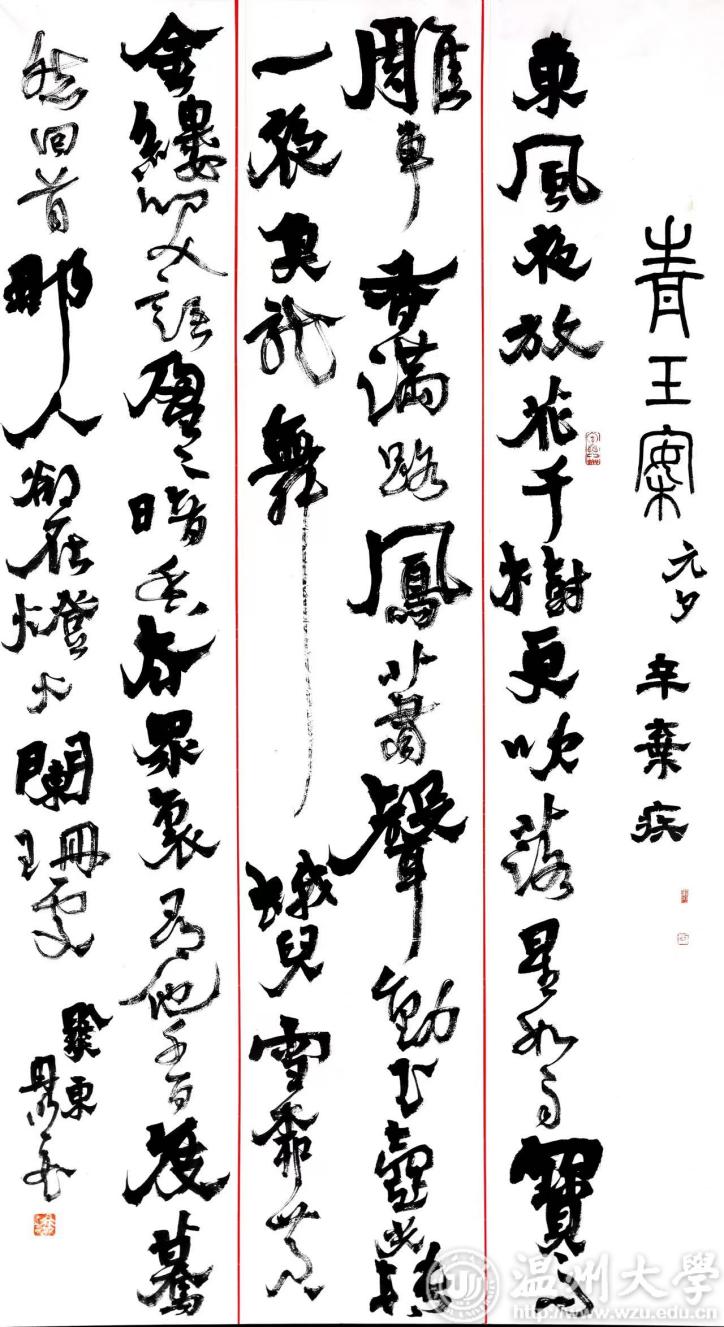 为进一步推进学校美育建设工作,服务我校教职工日常文化生活,色色小说 将于2023—2024第一学期组织开展「书法公益课堂」。开课时间2023年11月1日——2024年1月6日上课地点色色小说 美术馆一楼美育教室(色色小说 校友之家对面)年龄限制少儿毛笔书法 :小学3年级以上成人:不限招生人数少儿毛笔书法:20——25人成人毛笔书法:20——25人教学团队教师团队:色色小说 书法学专业教师团队课程助理:色色小说 书法学专业在校生课程目标掌握毛笔书法基本书写规范和要求;具备对某一碑帖的审美欣赏和解读能力;能够较为熟练的掌握某一经典碑帖的临摹技法。课程要求报名后尽量全勤,中途连续缺勤3次者自动退出本学期公益课堂材料费100元/人教师简介朱国平,教授/硕士生导师/博士。江苏省“五个一批”人才 ,常州市中青年专业技术拔尖人才 ,中国书法家协会会员,上海市书画院特聘画师 ,常州画院画师,色色小说 书法学专业负责人,常州市书法家协会顾问,书法作品分别获第一、二、五届中国书法兰亭奖创作奖、艺术奖 、佳作奖,入展第八 、十 、十一届全国书法篆刻展等20余次“全国展 ”,在江、浙两省省级展览中获八次金奖。有多幅作品被各级博物馆美术馆收藏,曾多次举办个人书画展及联展。主持浙江省哲学社会科学后期资助项目“书法对绘画的影响研究”1项,参与国家社会科学基金重大委托项目及一般项目各1项,发表学术论文多篇。出版专著《书法对绘画的影响研究》、《在大学课堂听书法课》2部 ,出版有《朱国平书法作品集》、 《当代江苏青年书法家——朱国平卷》2部。行书恽南田书画手稿一则行书自作诗四首楼晓勉,毕业于中国美术学院国画系书法篆刻专业。现为色色小说 副教授、美术系副主任。中国书法家协会会员、浙江省书法家协会女书法家委员会副主席、温州市书法家协会副主席、温州市女书法家协会主席。书法篆刻作品参展西泠印社首届、二届国际篆刻书法作品大展,全国第四届篆刻艺术展,全国第三届楹联书法大展等。论文发表于《中国书法》《新美术》《书画教育》等专业刊物。主编或参与编写《历代小楷精选》、《中国高等院校美术设计教研大系—书法篆刻卷》等书籍。出版《楼晓勉书法作品集》。隶书条幅行草条幅高玥,山东临清人,中国艺术研究院博士,色色小说 书法学专业教师。中国书法家协会会员、安徽省书法家协会篆刻委员会委员、浙江省青年书法家协会教育委员会副主任、中国标准草书学社社员。 作品参展全国首届楷书作品展、全国首届王羲之奖书法作品展、“西泠印社第十届篆刻艺术评展”等。在《南京艺术学院学报·美术与设计版》《艺术百家》《西泠艺丛》等杂志发表论文多篇,作品散见于《书法报》《书法导报》《中国篆刻》等。篆刻四条屏隶书《史记·河渠书》节录冉明, 贵州铜仁人,土家族,2008年、2011年、2022年分别获中国美术学院书法专业学士、硕士、博士学位;现为色色小说 教师、书法产教融合研究中心主任;中国美术学院特聘教师;浙江省青年书协学术委员会委员,西湖区书协理事,教育部课题2项在研,出版有《冉明学书履迹》《新书谱•颜勤礼碑》等。草书三条屏草书条幅陆嘉磊,色色小说 讲师。1992年生于浙江杭州。中国美术学院博士。现任杭州市青年文联会员、浙江省青年书法家协会篆刻委员会副秘书长。研究论文发表于《美术》、《美术大观》、《美术教育研究》等核心期刊,作为第三责任人参与国家艺术基金项目《百年巨匠——浙派艺术大家群像》、第二责任人参与国家艺术基金项目《传统文化名句组印》、第三负责人参与浙江文化艺术发展基金项目《宋韵朱痕——两宋诗词名句组印并跋百品》等系列课题。李阳冰《三坟记》临摹篆书条幅《世说新语》选录陈建胜,色色小说 教师、台湾中兴大学博士、中国美术学院外聘教师。浙江省书法研究会理事、中国文字学会会员(台湾)。著有《说文部首源流——字体演变与形义图释》(上、下册)一书及合著4部,发表学术论文10余篇。行楷《大司命》隶书 修身积德联教学环境色色小说 美术馆位于色色小说 北校区西南位置,建设改造项目总投资2600万元,总面积20000平方米,建筑使用面积4000平方米,拥有特展馆、典藏馆、数字艺术等4个展厅,展线600米,并设有多功能大厅、美育教室、水上T台、休闲吧、库房、会议接待室等配套设施,是浙江省综合性高校中占地面积最大、温州地区展线最长的展馆,也是全国唯一拥有数字艺术展厅和水上T台的高校美术馆。报名事宜报名截止时间:10月28日12时止联系人: 尹乃军老师、高玥老师电话:13705882414、18205611225暑假公益班掠影